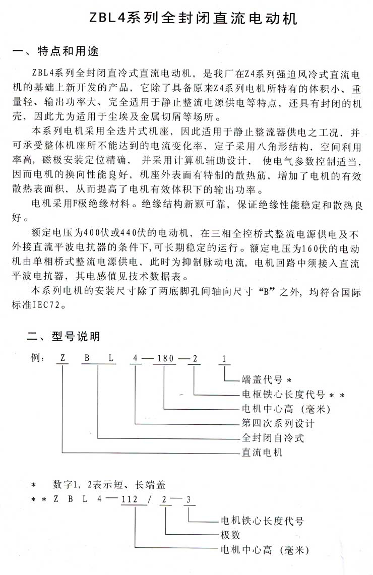 電動機 >>  ZBL4系列全封閉直流電動機 >> 詳細說明